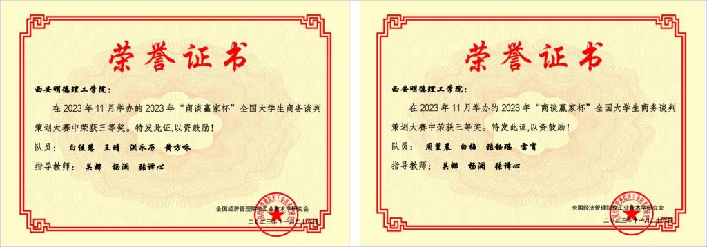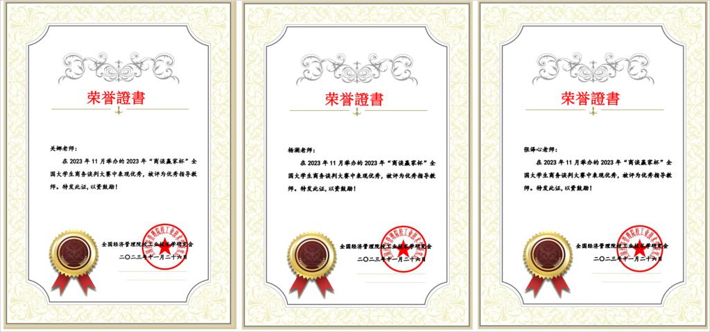 11月25日-26日,2023年“商谈赢家杯”全国大学生商务谈判大赛在沈阳航空航天大学举办。在此次比赛中,我校共派出6支参赛队伍,斩获二等奖4项,三等奖2项,同时苏家倍、袁冰阳同学获得“优秀谈判手”称号,关娜、杨澜、张译心三名教师获得“优秀指导教师”称号。