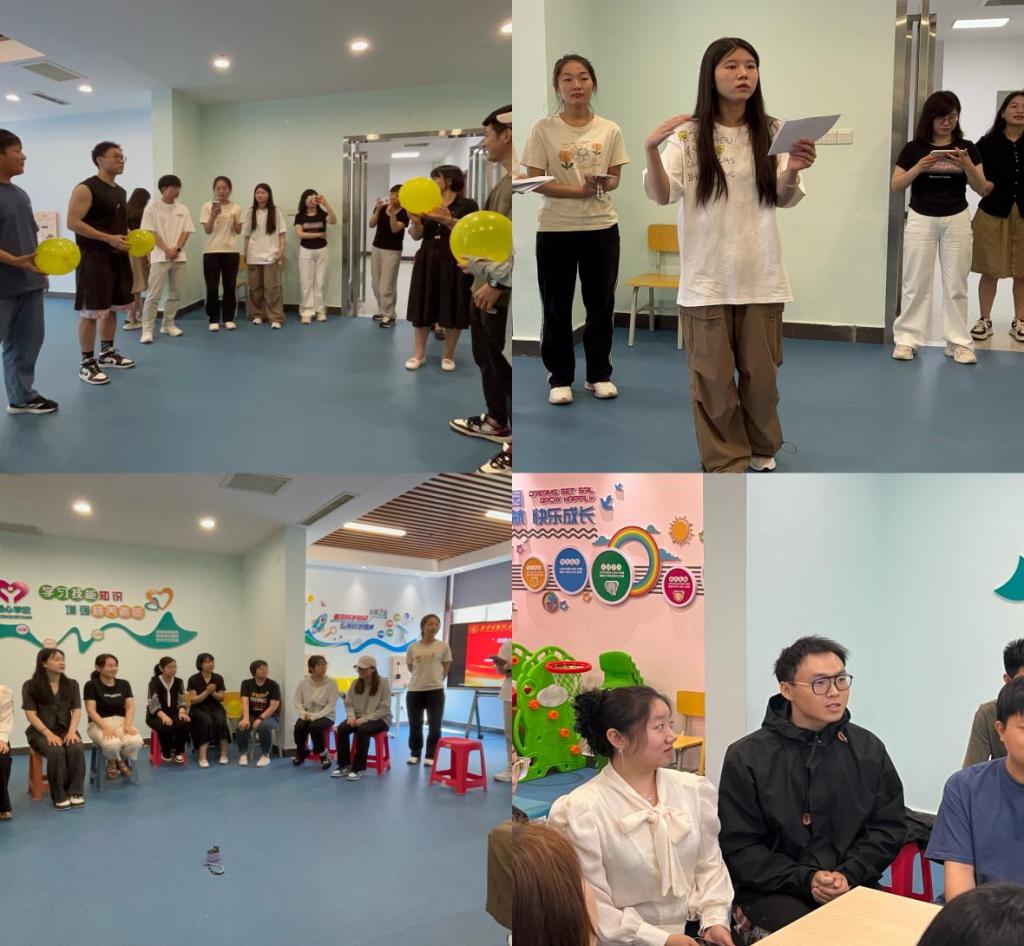 学校阳光心理协会组织开展了“温暖心灵,舒缓心情”主题心理团辅。活动过程中,与会师生和社区工作人员随机组合分成四组,通过气球不落地、我是谁以及集体按摩三个小游戏来释放情绪,舒缓身心,现场气氛活跃、氛围融洽。