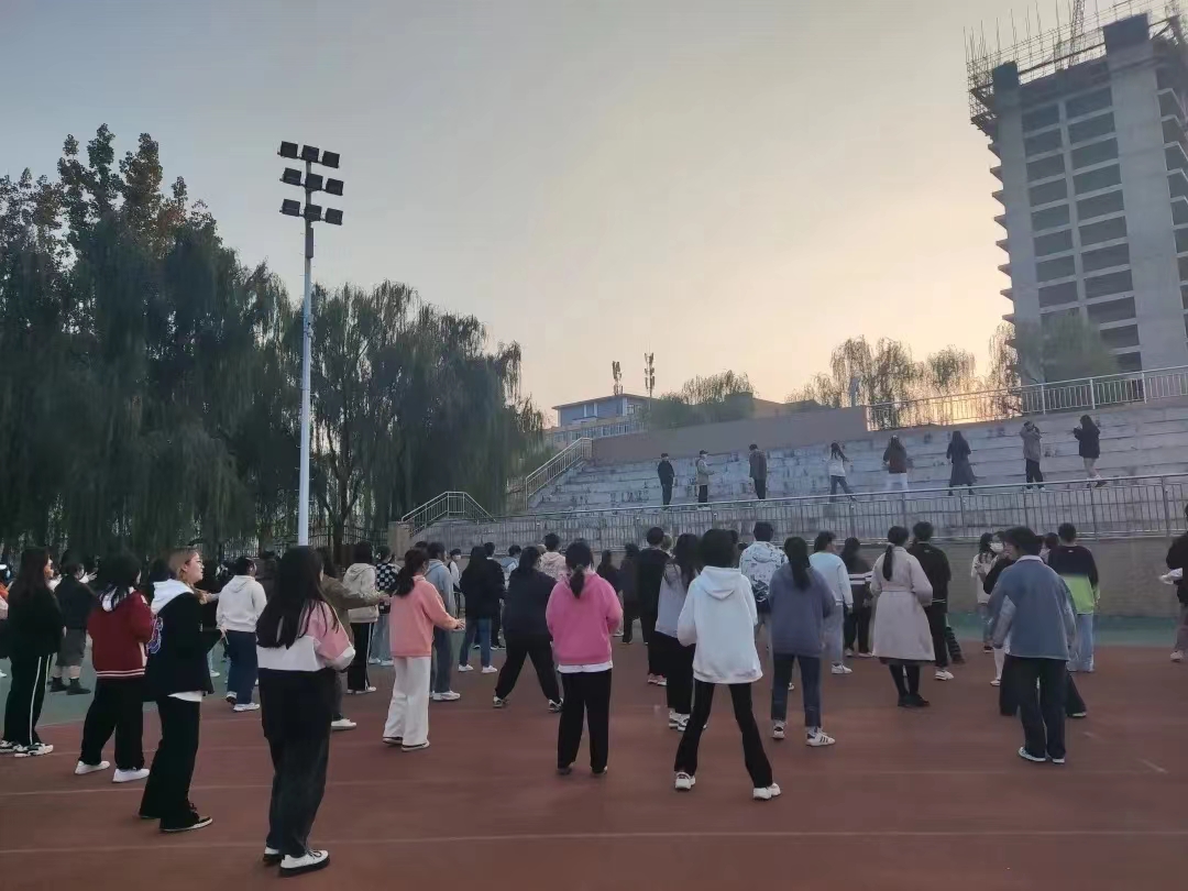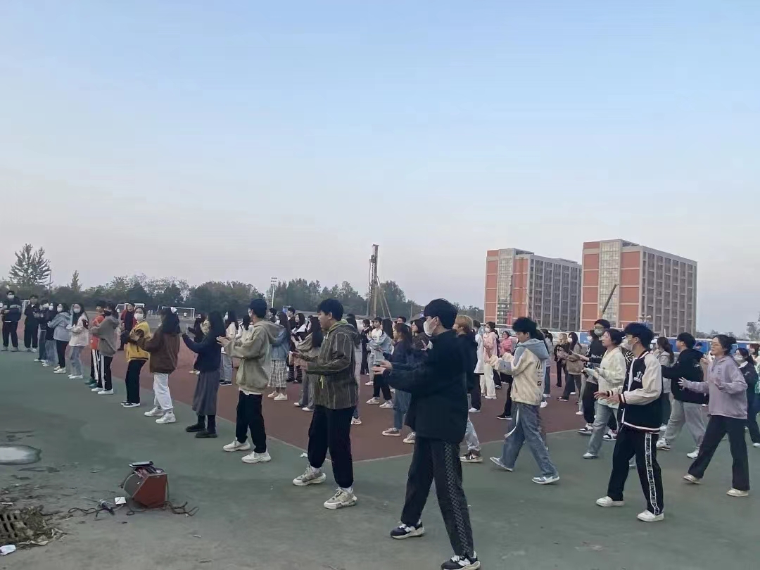 为丰富疫情防控期间课余文化生活,展示经管学子积极向上的精神风貌,经济与管理学院于11月6日17:00在操场举办“以舞战疫,舞动青春”大学生广场舞活动。在领舞同学的带领下,同学们挥舞双臂、迈开双脚,释放着属于青年人的热情,尽情地展现青春活力。