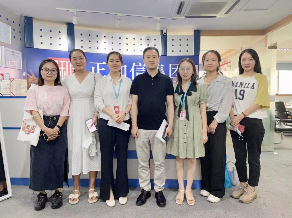 7月21日下午,参访团赴正和信企业服务中心有限公司调研。交流会上,正和信集团副总经理杨银娟从集团简介、企业文化、发展历程、企业荣誉等方面向参访师生介绍了集团基本情况;财务总监曹培鑫介绍了企业对财务人员需求情况;人力资源部经理晁艳介绍了校企合作开展情况,并对学校向企业输送的优秀毕业生表示感谢。何文举向企业介绍了半岛(中国)一站式服务平台概况和经济与管理学院基本情况,并说明本次来访目的;同时,与就职于该单位的我校2019届会计学专业毕业生贺佳怡、2022届毕业生许钰柔进行亲切交谈,鼓励校友们在工作岗位上发扬明德、亲民、至善的校训,彰显明德学子良好的精神风貌和优良的综合素质,欢迎校友们常回家看看,加强同母校的联系。随后,校企双方围绕实习就业基地建立、联合开展校园招聘、校企合作等事宜进行深入交流,企业领导们对学生关心的实习、就业岗位需求,工作内容,招聘条件,发展前景等问题进行耐心解答。洽谈会后,在总经办经理靳亚亚和人力资源部主管刘言容的陪同下,参访团参观了企业荣誉墙和各部门办公环境。