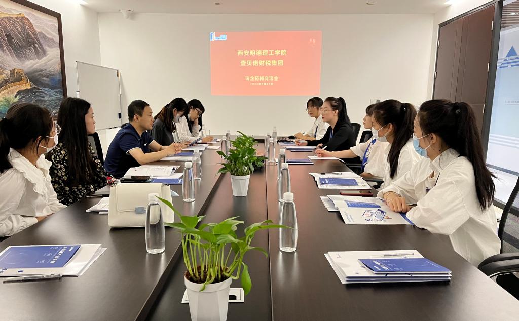 7月19日,参访团赴西安壹贝诺财税管理有限公司调研,在人力资源总监张思静和人事主管井冬婷的陪同下,师生们参观了企业办公环境、文化墙和业绩展览墙,并看望入职该单位的2022届会计学专业毕业生吴莎莎,了解毕业生岗位适应情况及工作现状。座谈会上,井冬婷从企业发展历程、文化理念、工作氛围和福利待遇等四个方面介绍了企业概况;何文举向企业介绍了半岛(中国)一站式服务平台概况和经济与管理学院基本情况,并说明本次调研目的;校企双方就开展校园招聘、建立实习就业基地等事项进行深入交流,气氛热烈。