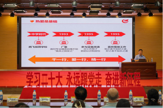为深入学习贯彻习近平新时代中国特色社会主义思想,贯彻落实习近平总书记致首届大国工匠创新交流大会贺信精神,大力弘扬劳模精神、劳动精神、工匠精神,激励学生成长成才。6月20日下午,智能制造与控制技术学院特邀中航西安飞机工业集团股份有限公司高级技师、“全国技术能手”、“全国五一劳动奖章”获得者、“航空工业首席技能专家”、“陕西省首席技师”黄孟虎为我院师生作了题为《高技能人才成长的舞台》的专题报告。报告会由学院党委副书记曾凯主持,学校党委副书记董昊、人力资源处处长白秦川、科研处副处长周强、党委学生工作部副部长童扬梓、学院副院长殷锐、全体学工干部、各二级学院学生代表参加了报告会。