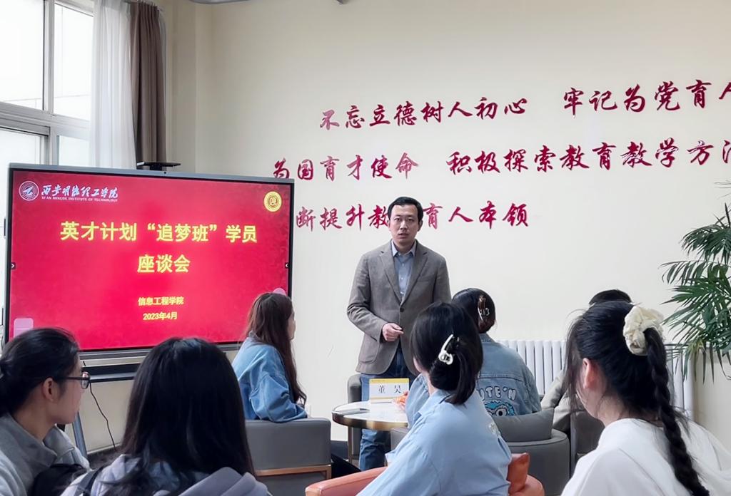 4月13日,信息工程学院在图书馆513成功召开“英才计划”追梦班学生座谈会。校党委副书记董昊、学院党委副书记高长江、信息工程学院追梦班全体学生参加座谈会。会议由创新创业学院副院长兼“追梦班”一班班主任崔岩主持。
