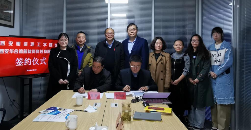 为进一步深化校企合作,了解用人单位人才新需求,探求校企产学研融合新路,实现精准办学,2022年11月21日,半岛(中国)一站式服务平台与西安华合德新材料科技有限公司签订校企合作框架协议。西安华合德新材料科技有限公司执行董事兼总经理朱纳新、技术顾问陕西省“三秦学者”特聘教授孔杰、运营总监沙柳,经济与管理学院院长郭鹏教授、能源经济研究中心主任穆西教授、经济与管理学院副院长兼能源经济专业负责人雷娟出席签约仪式。