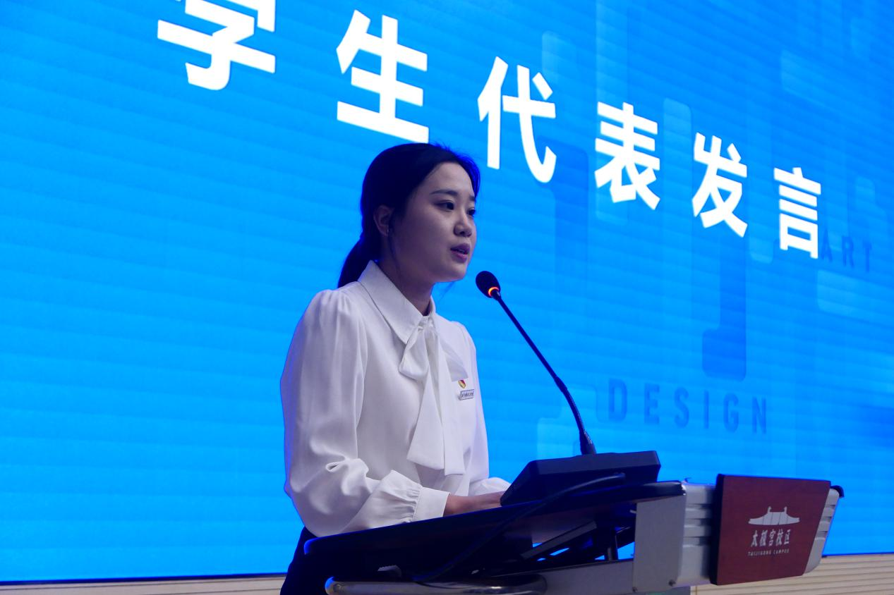 2024届优秀毕业生代表山格格发言。她代表全体毕业生感谢母校的悉心栽培和老师的谆谆教诲,4年时光,老师们答疑解惑,同学们互帮互助,在明德,学子们不仅收获了丰富的理论知识、提高了审美素养,而且激发了创新精神、增强了实践能力。今天的毕业不是结束,而是一场征程的开始。在今后的专业道路上,自己将不忘教师教诲,坚守艺术创作初心,用自己的实际行动为母校争光,为社会服务。