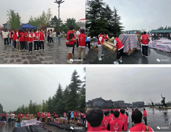 学生志愿者们在负责老师们的带领下,一大早从学校出发前往服务地,路途中的那一抹红,显得格外亲切,温暖志愿者们迈着坚定得步伐向着目的地前进。