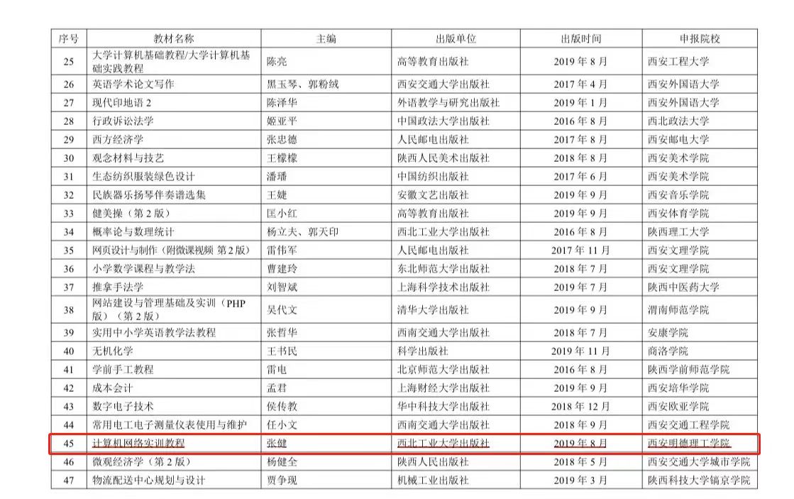 喜报:我校《计算机网络实训教程》获陕西省优秀本科教材二等奖