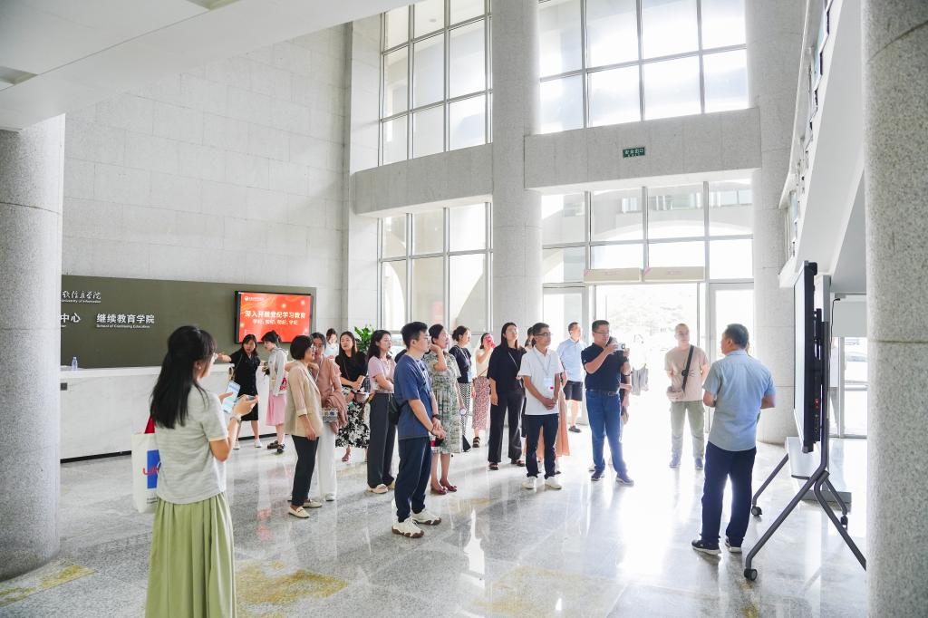 6月29日下午,在培训实施班主任王艺霏的带领下,教师们参观了大连东软信息学院软件园校区数字艺术与设计学院、实验实训中心及SOVO创新创业学院。了解了数字艺术与设计学院专业特色,参观了元宇宙虚拟展馆及学院学生作品展;参观了实验实训楼云计算、元宇宙实验室等特色重点实验室,了解实验实训中心智慧化管理应用及重点实验室建设;在SOVO创新创业学院切身感受产教融合、创新创业教育、社会实践等方面取得的丰硕成果。老师们在轻松愉悦的氛围中感受独具特色的东软校园,交流学习实践经验。