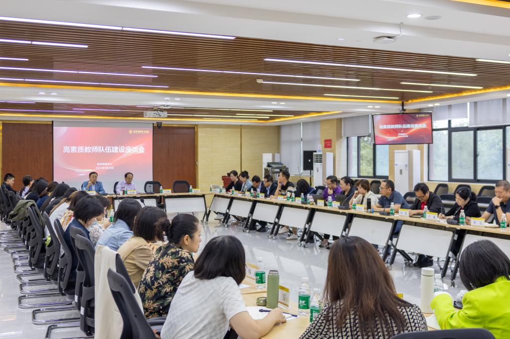 为深入贯彻全国教育大会精神,推进学校高素质专业化教师队伍建设与发展,9月29日,学校在明志楼311会议室召开高素质教师队伍建设座谈会。会议由教师发展中心组织,校长王志刚,党委副书记、副校长、纪委书记白秦川,二级学院院长、副院长、部分职能部门负责人及暑期新加坡研修班教师代表等45人参加会议,副校长白秦川主持会议。