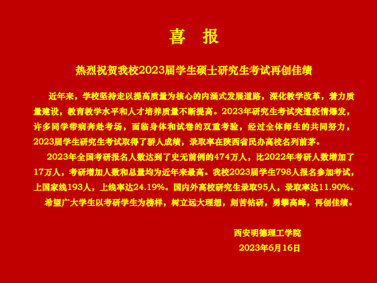 热烈祝贺我校2023届学生研究生考试再创佳绩