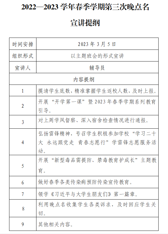 2022-2023学年春季学期第三次晚点名宣讲提纲