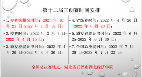 2021年年底,为了应对突如其来的疫情,学校及时调整了教学计划,根据学校《关于疫情防控期间进一步加强教学组织安排的通知》(教科部【教字】2021-058号),为了丰富同学们在疫情期间的学习内容,同时,为提高大家对第十二届全国大学生电子商务“创新、创意及创业”挑战赛(以下简称“三创赛”)相关知识的理解,2021年12月29日、31日,2022年1月4日、6日,信息工程学院电子商务专业教师团队张淑丽老师、张娜娜老师、陈曦老师、王娟老师专门举办了四场竞赛宣讲及培训讲座,全院共110余位同学共同聆听了此系列讲座,同时,建立了三创赛校内选拔赛微信群,方便参赛的同学和老师互动交流。