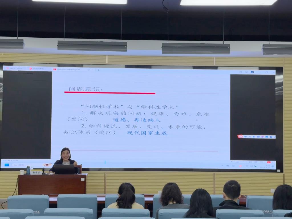 讲座中,杨冰郁教授从党史研究的问题意识出发,围绕“中共党史研究方式类型”、“新革命史的国际学术背景转向新文化史”和“国内学者们对于新革命史研究范式的思考”等方面展开,杨教授用详实的党史研究资料,深刻阐述了党史文化研究方式的变迁。