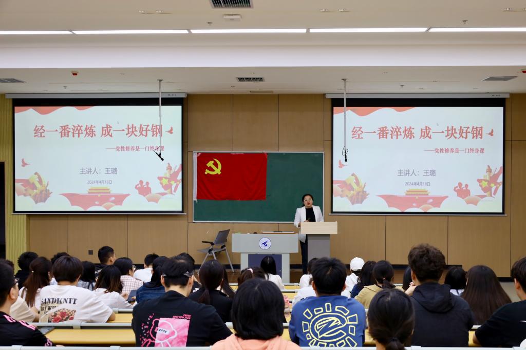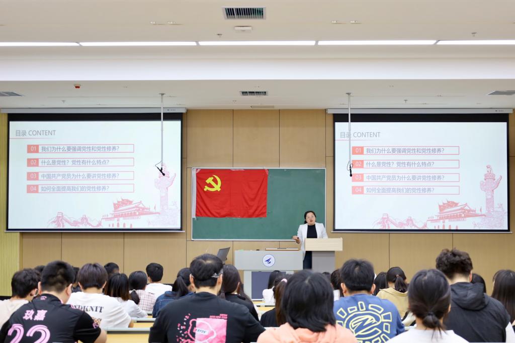 课上,王璐老师从我们为什么要强调党性和党性修养、党性的概念和特点、中国共产党党员为什么要讲党性修养以及如何全面提高党性修养等四个方面展开讲述。期间,学生观看学习了《中国共产党员的精神谱系》、《数风流人物》节目选段,王老师结合雷锋、张定宇、焦裕禄等优秀党员先进事迹为同学们详细讲解了中国共产党为什么要讲党性修养。最后,王老师针对支部党员和积极分子从“理论”、“政治”、“纪律”、“道德”和“作风”五个方面提出怎样全面提高个人的党性修养。王老师谈到党性修养是共产党人修身养性的必修课,也是共产党人的“心学”,她勉励同学们始终保持开拓进取的饱满精神,继续为师生做好服务,真正做到讲奉献、敢担当、有作为。