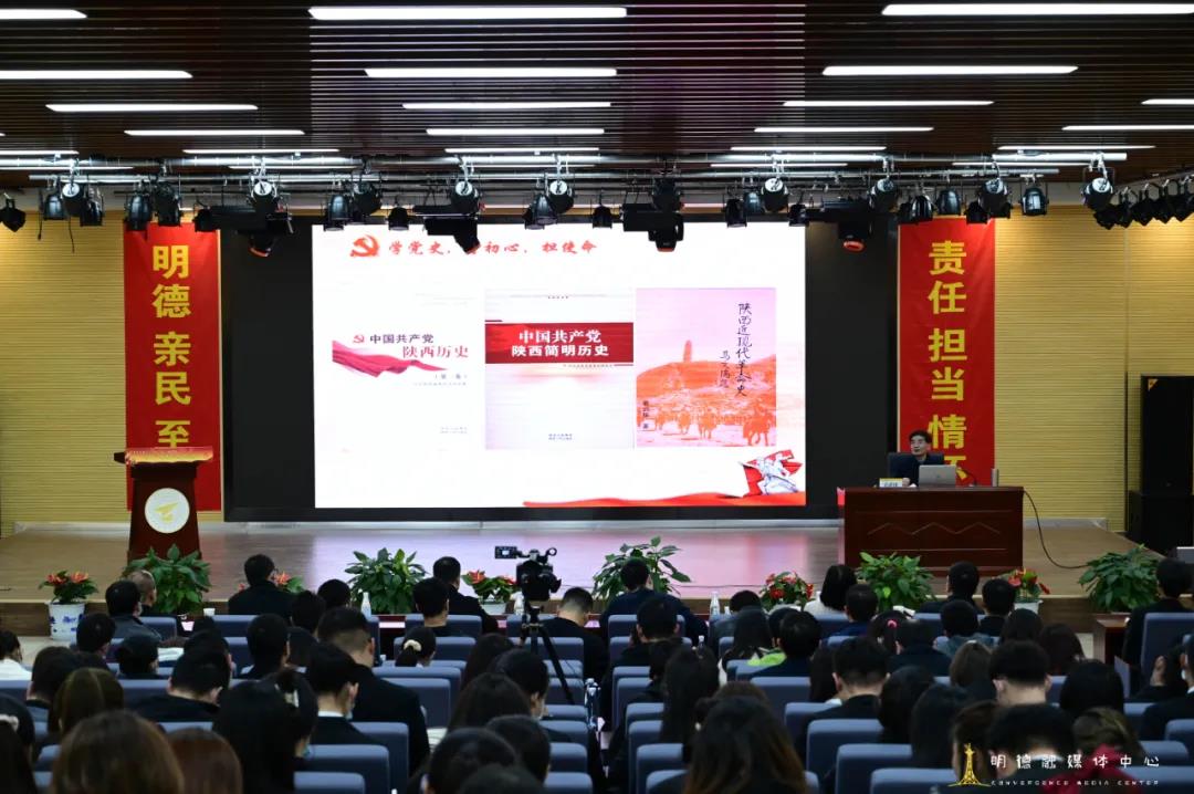 讲解中,袁教授以大量党史资料为依据,结合三秦大地英雄人物事迹,阐释了中国共产党人的初心和使命,教育引导广大师生发扬革命先烈们顽强拼搏、不畏牺牲的精神,学会总结历史经验教训,汲取开拓前进的智慧和力量,做新时代的先锋。