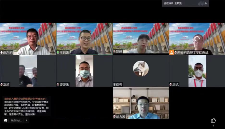 第二场报告由西京学院马克思主义学院院长、西北大学教授杨洪主讲。他的报告围绕“继承和弘扬伟大建党精神”展开,以伟大建党精神的理论和实践源泉、伟大建党精神的基本内涵和特征、伟大建党精神的历史与延展、伟大建党精神的时代意义和价值、继承和弘扬伟大建党精神的主要途径这五个方面为重点,突出强调了中国共产党人的精神谱系,倡导全体思政课教师要积极弘扬光荣传统、赓续红色血脉,永远把伟大建党精神传承下去。此外,当天的培训活动还展示了两场陕西省思政课大练兵优秀录像,为马院教师参加思政类竞赛提供了指导。