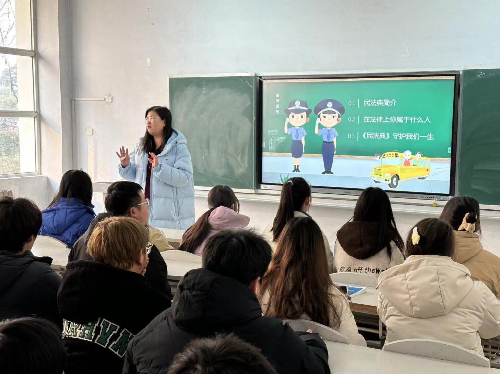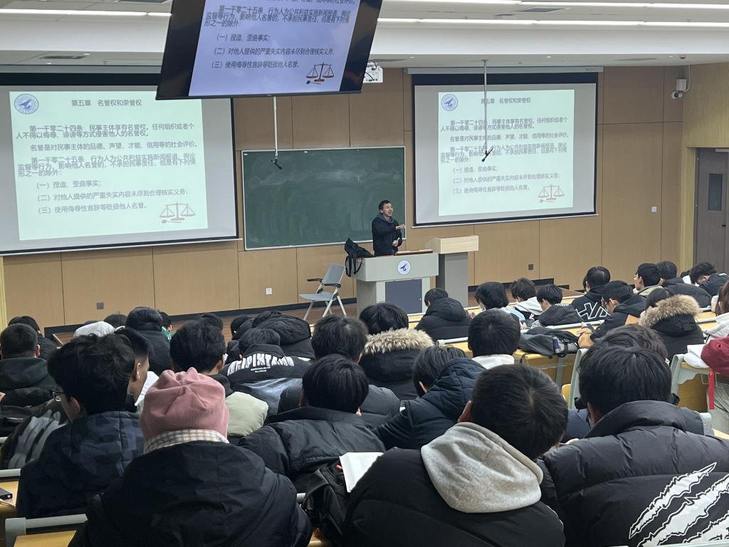 为深入学习贯彻党的二十大精神和习近平法治思想,进一步加强我校法治宣传教育,增强师生法治意识,提升师生法治素养,马克思主义学院惠斌、樊静、景怡欣、王婉菲、马乾昱、张剑蓉、马哲和李文彬8位老师于12月14日-12月25日期间,分别走进各二级学院不同班级开展了普法宣传活动。