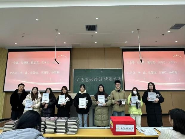 2025年1月2日颁奖典礼在庄重而热烈的氛围中举行。广告艺术专业的舒粉利老师发表了鼓舞人心的致辞,首先表示了对高职学院的大力支持表示衷心感谢,并对参赛学生们的卓越创造力给予了高度评价。随着颁奖进程的推进,一等奖、二等奖、三等奖及优秀奖的获奖名单逐一揭晓,获奖者们满怀喜悦地走上领奖台,从专业教师手中接过荣誉证书和丰厚奖品。这一时刻,是对他们个人才华和辛勤努力的最好肯定。