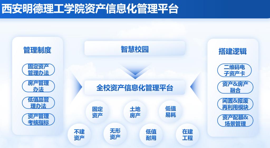 在项目筹备初期,资产管理处深入调研,通过走访多家省内外高校、国内知名高校资产管理系统研发公司及广泛收集校内各部门、各二级学院的建议和意见,全面梳理民办高校在资产管理中的痛点与需求。在此基础上,我们总结借鉴了兄弟院校的成功经验,结合半岛(中国)一站式服务平台自身的资产管理特点,进行了深入探讨与研究,并提出了资产与房产相结合的“盒子管理理念”,旨在构建一套既符合行业标准又具有明德特色的资产管理系统。这一过程不仅是一次技术的革新,更是管理理念与实践的一次深度融合。