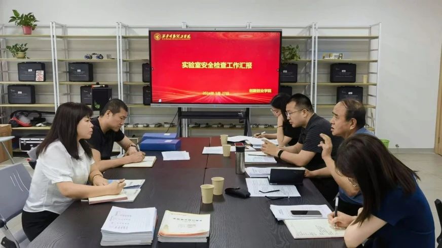 5月27日,创新创业学院在工程实训中心511进行实验室安全专项检查工作汇报,教务处副处长任华、专家李东、科员巨晶晶、赵谦,创新创业学院副院长崔岩,实验室管理员参会。
